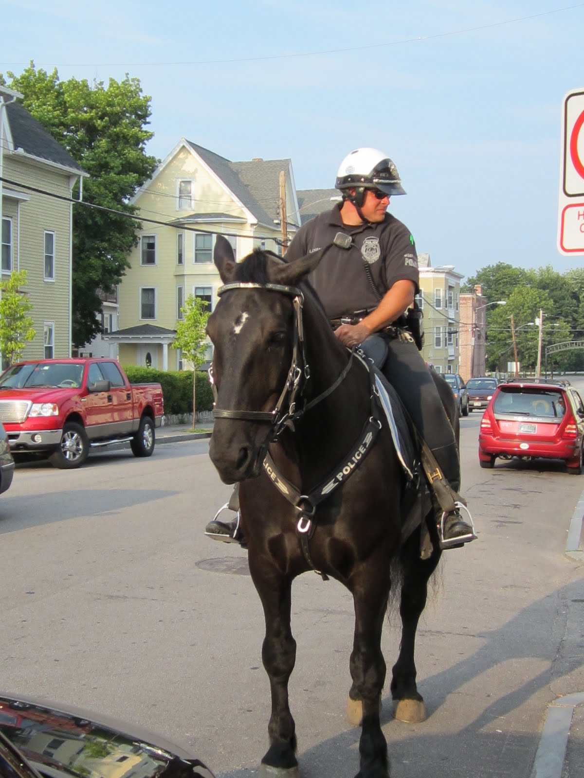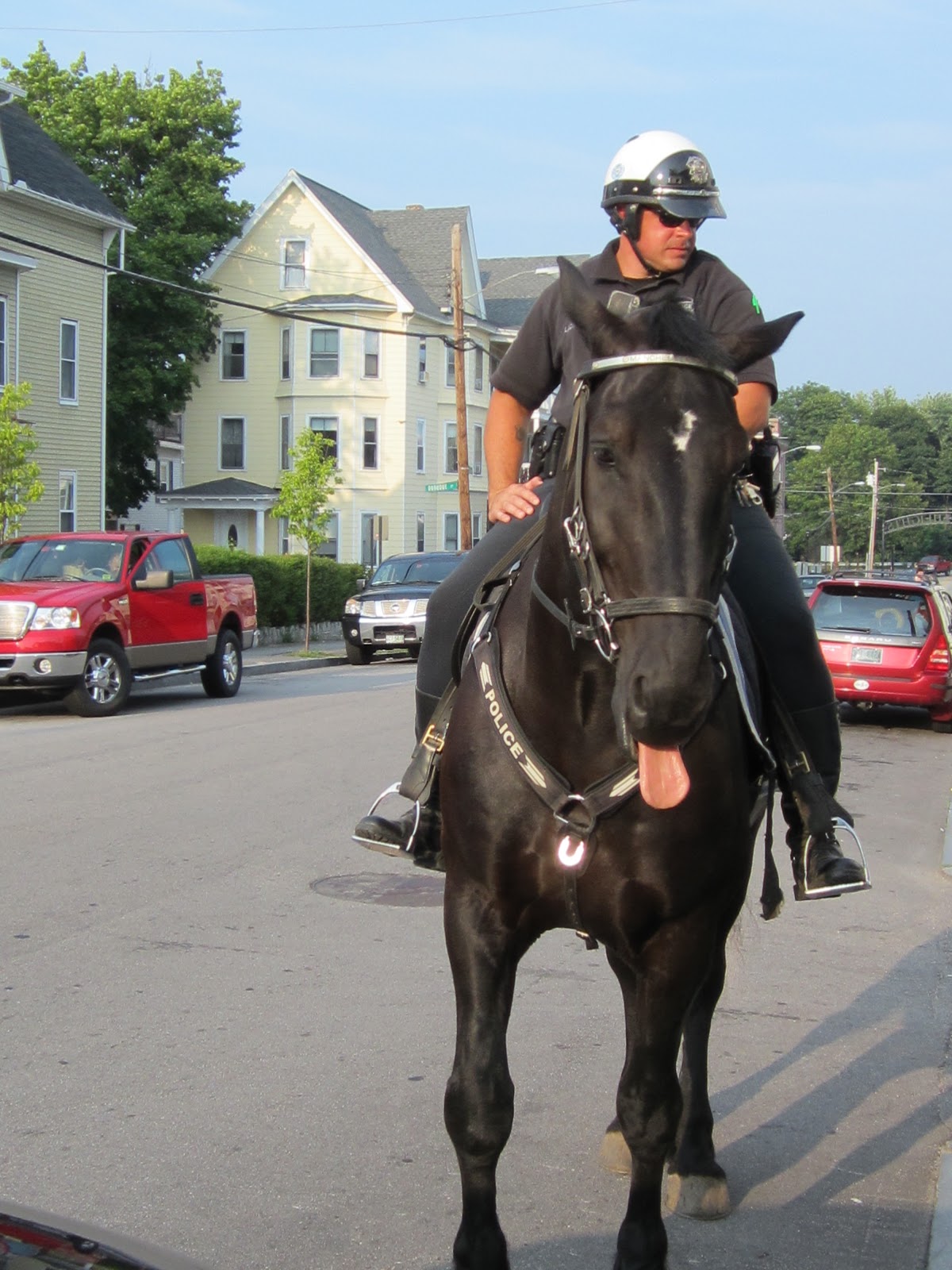 Once a month the city of Manchester has a community gathering at a local restaurant (the restaurant closes at 2pm and opens only for our meeting at 7pm once a month). Well, tonight, there was ice cream social before the meeting. First off, when I got there, I swear this horse was posing for this picture......