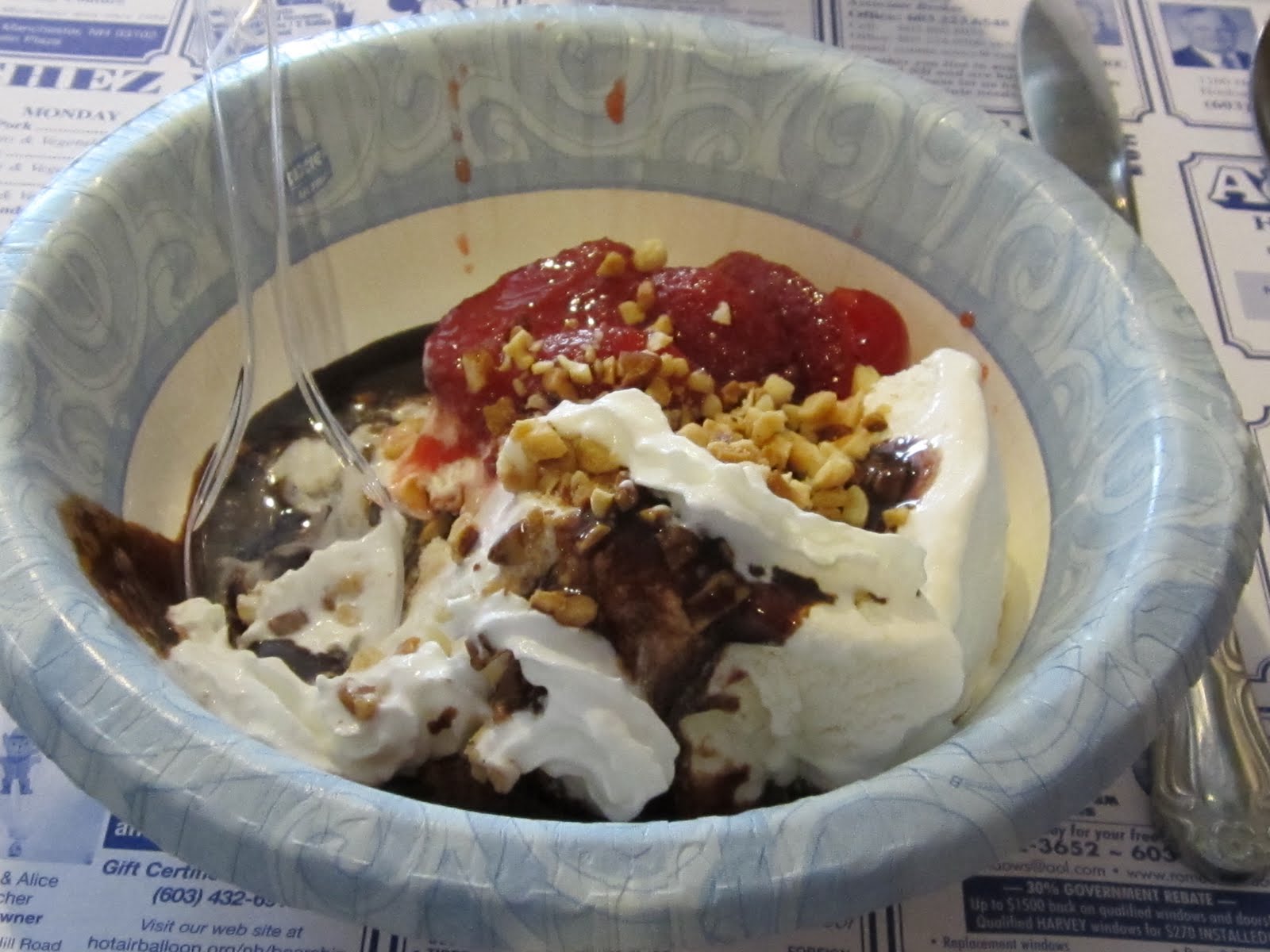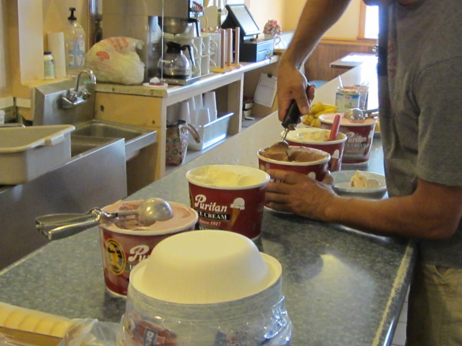 Okay, moving on......the ice cream social was sponsored by a local restaurant called the Puritan Backroom. They have good ice cream there and they brought five flavors tonight.